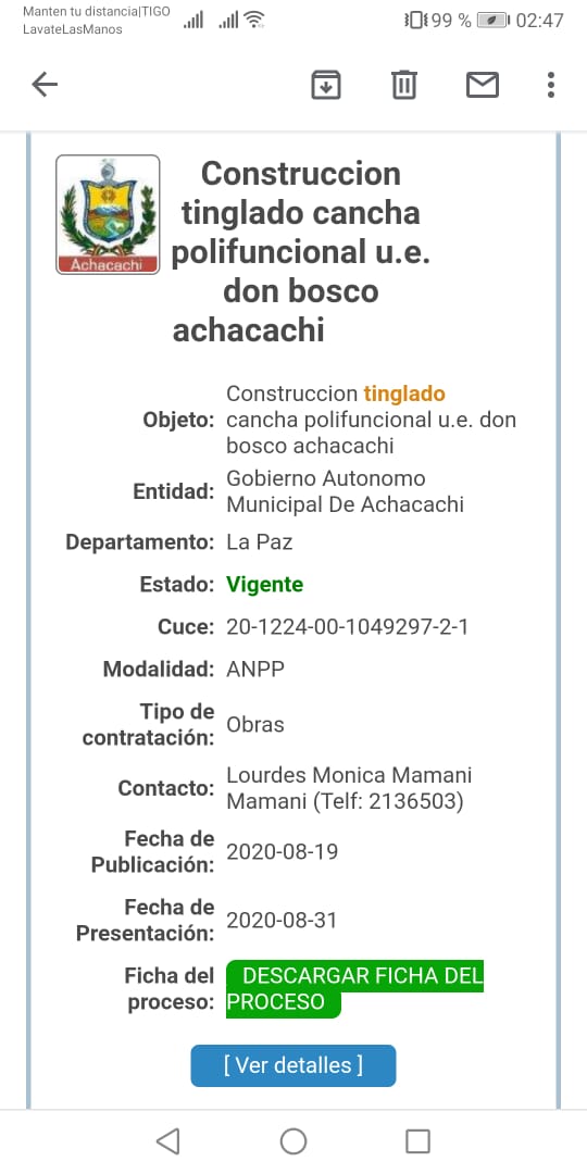 Datos cuenta JURIDICA NEMABOL(Caja de Ahorro, CI 2044323 LP, NIT 2044323014 CIUDAD LA PAZ)